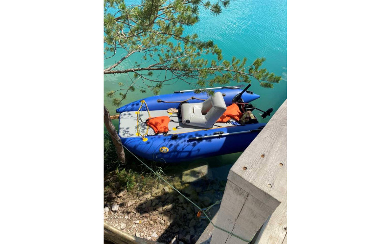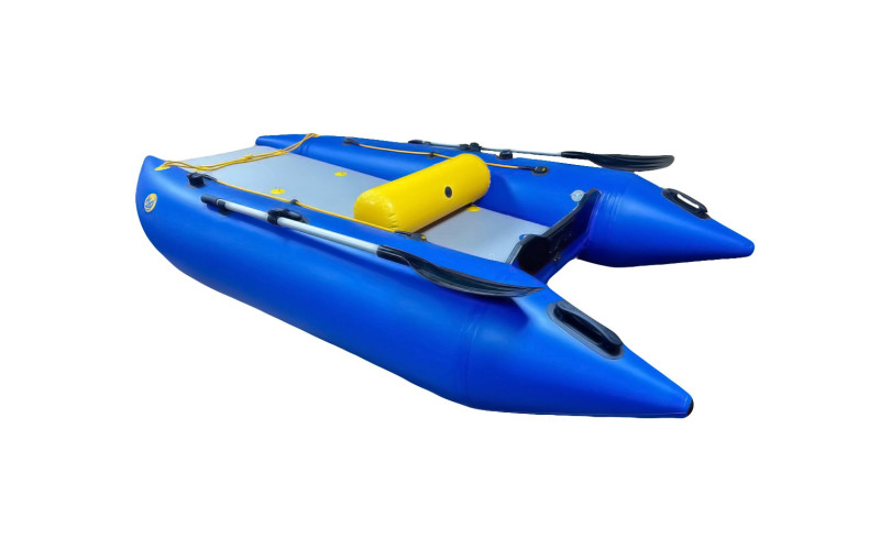 Довжина катамарана 330 см і ширина 190 см дають просторий кокпіт 250 см на 90 см, а вантажопідйомність до 500 кг дозволяє брати додаткове спорядження або пасажирів. Діаметр балонів 50 см додає “поплавковий” запас плавучості, а сам корпус важить близько 24 кг - переносити можна без героїзму. За безпеку відповідає схема камер 2+1 - навіть при проблемі з одним відсіком катамаран зберігає плавучість. Матеріал балонів - армований ПВХ щільністю 1100 г/м², при цьому кожен балон захищений придонним брусом шириною 12 см.