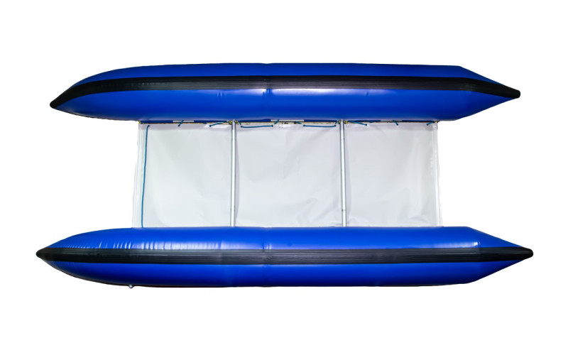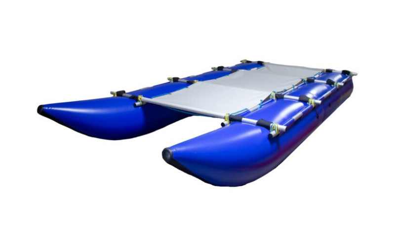 WaterCat-450 – це катамаран для сплаву з ПВХ, створений для туристичних маршрутів і перевезення 4–6 веслярів зі спорядженням. Форма балонів із продуманими обводами носа та корми розрахована саме під подорожі – катамаран впевнено йде на спокійній воді й тримає курс на довгих ділянках. Модель призначена для проходження річок до 3 категорії складності включно, тому підходить для походів, тренувань і комерційних турів із досвідченим керівником.