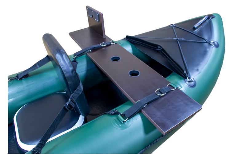 У центрі - повноцінний риболовний столик. На ньому місце для приманок, дрібниць, коробок, а з боків - штатні тримачі для вудилищ. Ніяких стяжок, саморобних конструкцій і «почекай, я зараз щось придумаю». Все зібрано правильно й так, як треба рибалці. Для тих, хто хоче купити риболовний каяк з нормальною організацією робочого простору, це сильний аргумент.